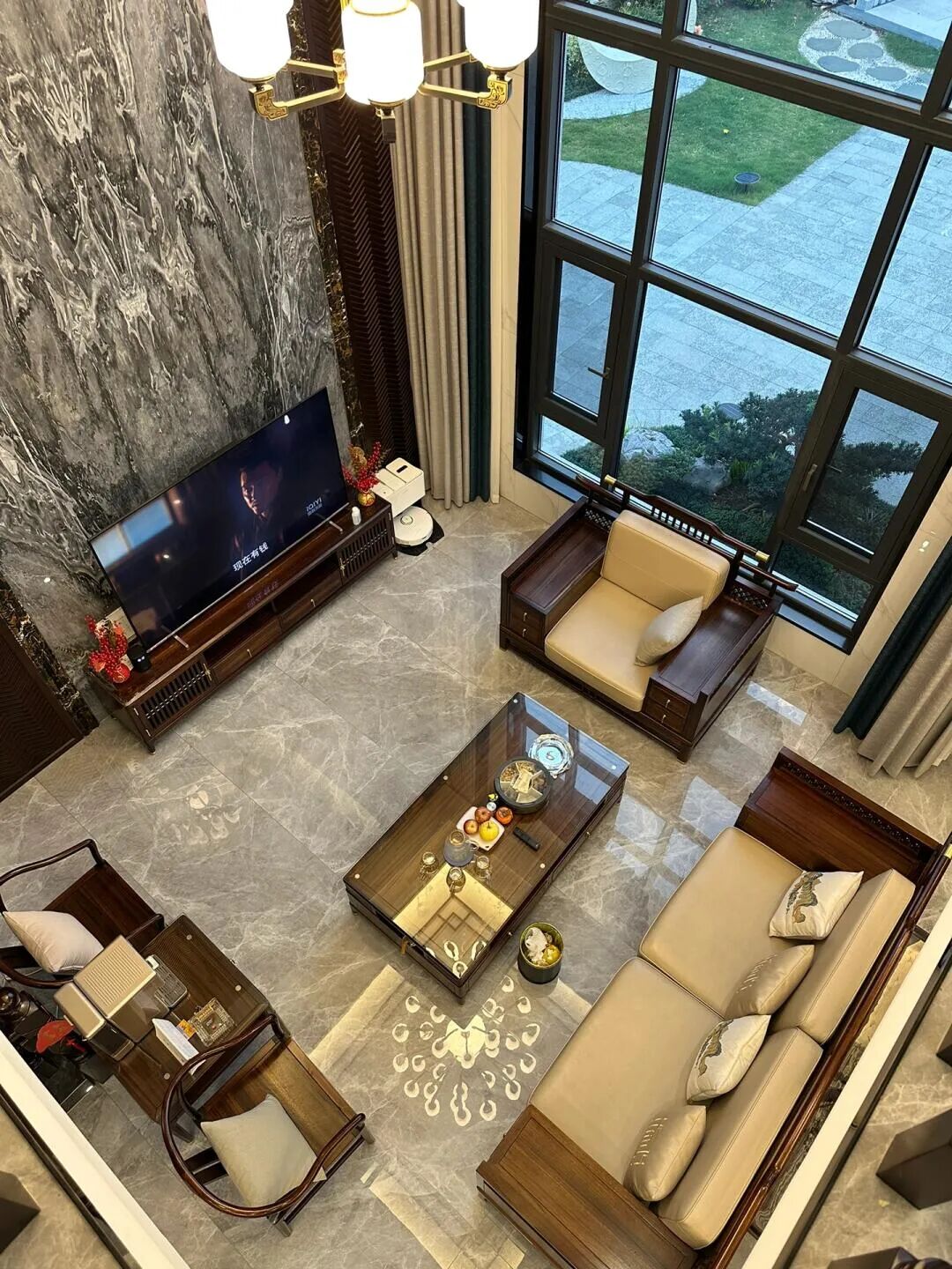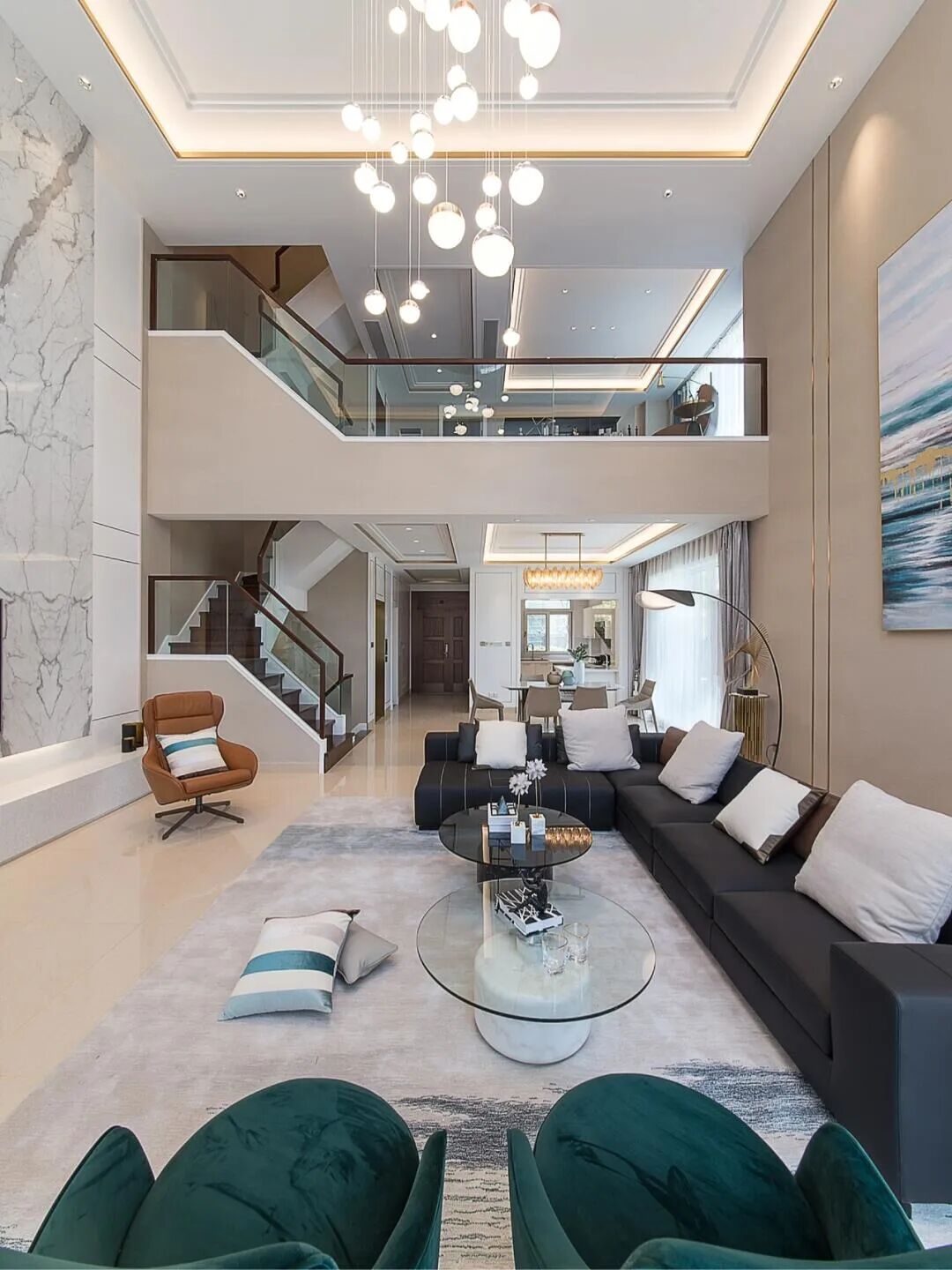 1、进入到主楼,挑高通透的纵向大客厅就给足了主人家的气派;