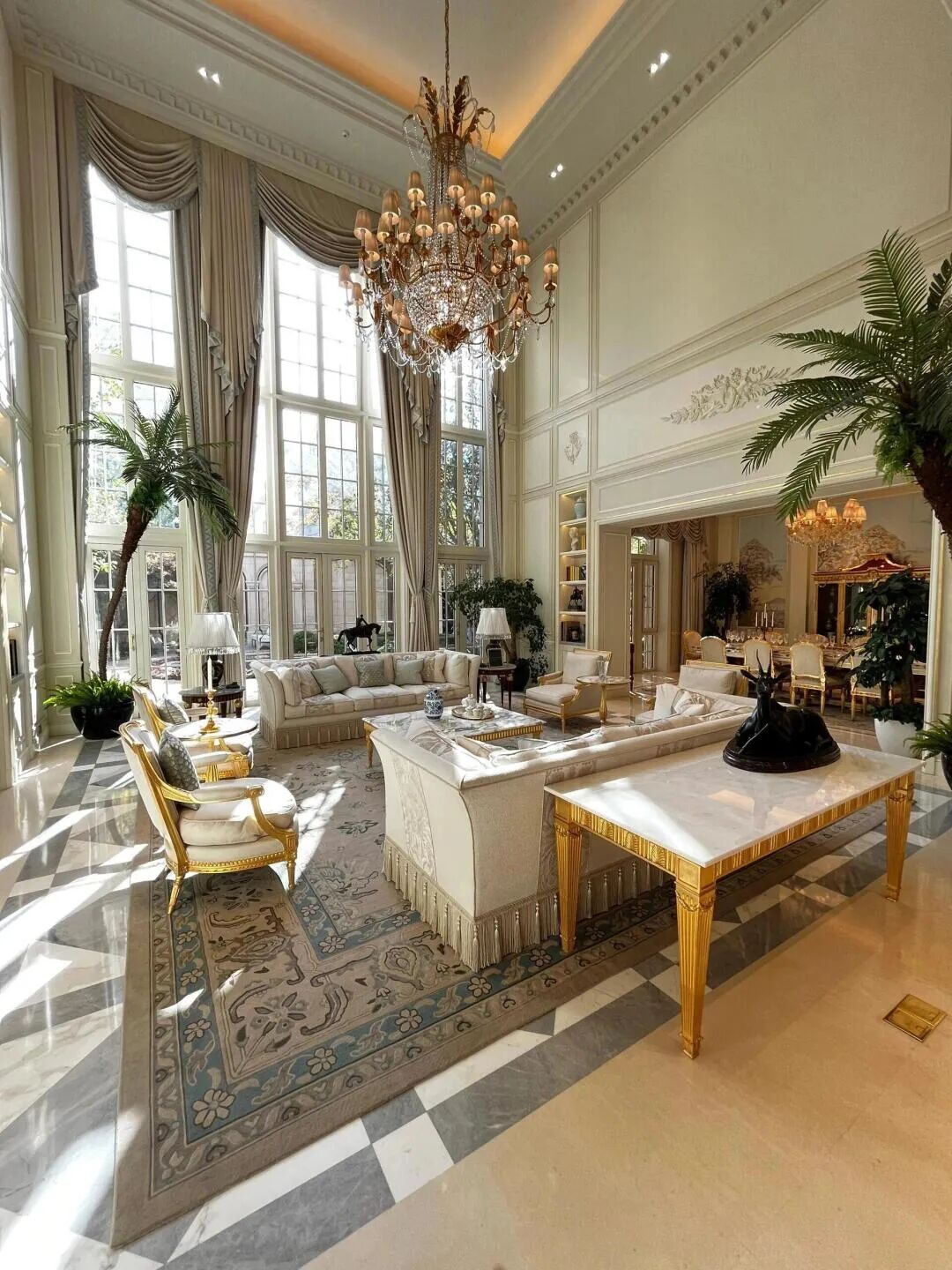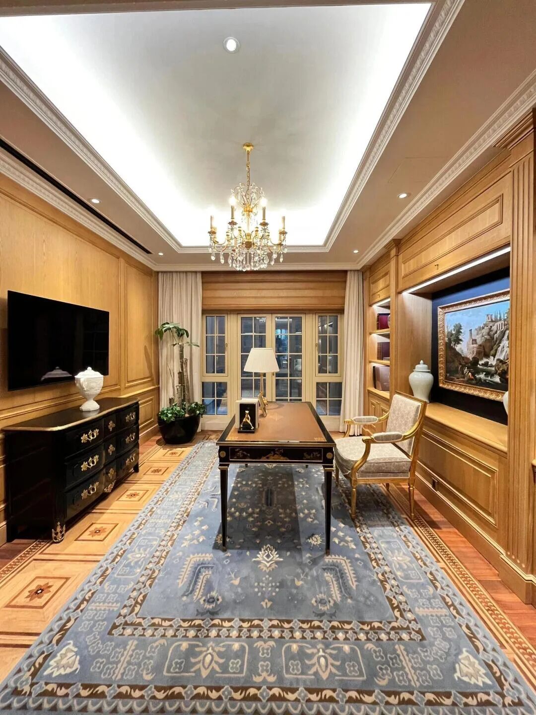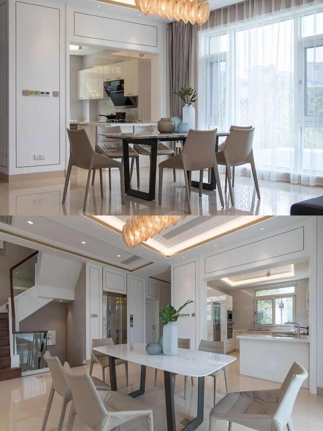 2、三厅一体化私宴餐厅,大到可以举办舞会,聘请五星级大厨在家里办一场高定晚宴,满满的电影镜头感;